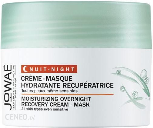 JOWAE krem-maska – działanie:JOWAE nawilżająco – regenerujący krem-maska na noc nawilża, wygładza tak, że skóra sprawia wrażenie bardziej wypoczętej. Zawiera antyoksydacyjne fenole oraz kumkwat – owoc bogaty w witaminę C i minerały. Ekstrakt z papai odpowiada za odnowę i wygładzenie skóry. W ten sposób rano jest ona nie tylko bardziej nawilżona, ale również wygląda na wyraźnie wypoczętą. Cera staje się promienna i świeża. Krem jest odpowiedni dla wegan. Testowany dermatologicznie.Zastosowanie:Skóra sucha, przesuszona i wrażliwa.Sposób użycia:Stosuj codziennie cienką warstwę. Można także nałożyć grubą warstwę, traktując produkt jako maskę, którą należy pozostawić na twarzy na całą noc. Nie wymaga spłukiwania.Skład według INCI:AQUA/WATER/EAU, CAPRYLIC/CAPRIC TRIGLYCERIDE, GLYCERIN, DIMETHICONE, TRIETHANOLAMINE, AMMONIUM ACRYLOYLDIMETHYLTAURATE/VP COPOLYMER, LAUROYL LYSINE, CARBOMER, ARACHIDYL ALCOHOL, BUTYROSPERMUM PARKII (SHEA) BUTTER, CHLORPHENESIN, ASCORBYL GLUCOSIDE, ETHYLHEXYLGLYCERIN, PARFUM/FRAGRANCE, BEHENYL ALCOHOL, CITRUS JAPONICA FRUIT EXTRACT, TETRASODIUM EDTA, ARACHIDYL GLUCOSIDE, SODIUM CITRATE, PAPAIN, TOCOPHEROL, SEMPERVIVUM TECTORIUM EXTRACT, BIOSACCHARIDE GUM-1, 1,2-HEXANEDIOL, CAPRYLYL GLYCOL, GLYCINE SOJA (SOYBEAN) OIL, SODIUM BENZOATE, GLYCERYL CAPRYLATE, SODIUM ANISATE, SODIUM LEVULINATE, CITRIC ACID, ALGIN. 1454A.Pojemność opakowania:40 mililitrów.