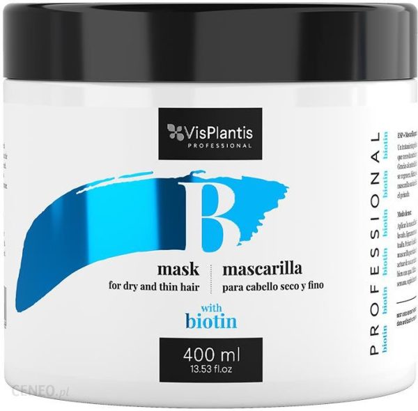 Jeżeli szukasz profesjonalnej kuracji dla włosów, jak z salonu fryzjerskiego, to maska Vis Plantis Professional do włosów suchych i cienkich będzie idealnym wyborem. Dzięki zawartości biotyny, włosy, które wymagają odżywienia i wzmocnienia staną się niesamowicie nawilżone, zregenerowane i pełne blasku. Maska idealnie wygładzi włosy oraz ułatwi ich rozczesywanie.Zawiera także ekstrakty z lukrecji, lipy i prawoślazu. Lukrecja odpowiada za odżywienie, odświeżenie i łagodzenie podrażnień. Ekstrakt z lipy wygładza włosy i hamuje powstawanie suchego łupieżu, natomiast prawoślaz ogranicza przetłuszczanie się włosów, gdyż nawilża oraz łagodzi podrażnienia skóry głowy.Dlatego jeżeli chcesz się poczuć we własnej łazience, jak w salonie fryzjerskim, sięgnij po maskę do włosów suchych i cienkich z linii Vis Plantis Professional. Dla wzmocnienia efektu, przed nałożeniem maski zastosuj szampon z tej samej serii.Maska dostępna jest także w 1000 ml opakowaniu.