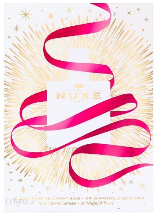W 24 skrytkach kryją się:Aquabella® Żel-mikrozłuszczający do twarzy 15 mlAquabella® Emulsja nawilżająca do skóry mieszanej 15 mlCrème Fraîche® de beauté Krem nawilżający do skóry normalnej 15 mlCrème Prodigieuse® Boost Żelowy krem do skóry normalnej i mieszanej 15 mlNuxuriance® Ultra Krem o wzbogaconej konsystencji do skóry suchej 15 mlNuxuriance® Gold Ultraodżywczy olejkowy krem do twarzy 15 mlNUXE Bio Lekki korygujący krem nawilżający -algi morskie 15 mlNUXE Bio Regenerujący olejek odżywczy na noc – olej ryżowy 5 mlRêve de Miel® Ultrakomfrotowy krem do twarzy dzień&noc 15 mlRêve de Miel® Krem do rąk i paznokci 15 mlRêve de miel® Ultra-bogaty żel do mycia twarzy i ciała 30 mlRêve de miel® Nawilżająca pomadka do ust 4 g