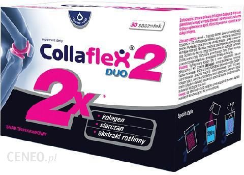 Oleofarm Collaflex DUO, 30 saszCollaflex DUO polecany jest osobom dbającym o utrzymanie prawidłowej kondycji chrząstki stawowej i zdrowych kości, zwłaszcza osobom uprawiającym sport, które chcą wspierać organizm w produkcji kolagenu. Wyjątkowy zestaw składników rekomendowany do stosowania dla osób, które chcą zadbać o dobrą kondycję kości i stawów. Suplement diety Collaflex Duo zawiera kompleks Collatrin®, w skład którego wchodzi kolagen typu II, kwas hialuronowy oraz siarczan chondroityny. Dodatkowo w preparacie mamy zawartą witaminę C, kolagen typu I oraz dwa ekstrakty – z kłącza imbiru i z żywicy kadzidłowca (źródło kwasów bosweliowych). Witamina C to składnik wspierający prawidłową produkcję kolagenu w organizmie. Preparat jest przeznaczony w szczególności dla osób, które uprawiają sport.