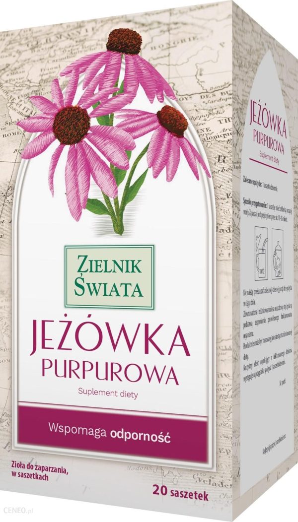 Przeznaczenie:Jeżówka purpurowa, suplement diety polecana jest szczególnie w sezonie jesienno-zimowym w celu utrzymania zdrowego układu odpornościowego. Zastosowanie: Jeżówka purpurowa, suplement diety przeznaczona jest dla osób, które chcą wesprzeć układ odpornościowy organizmu. Korzystny efekt wynikający z deklarowanego działania występuje w przypadku spożycia 1 saszetki dziennie. Składniki: ziele jeżówki purpurowej, jabłko.